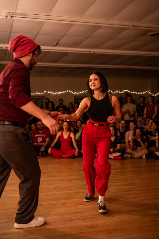 Open to all attendees. Dancers will be judged individually for prelims and as partnerships for finals. This is a primarily Lindy Hop competition but dancers will not be penalized for dancers other swing styles.